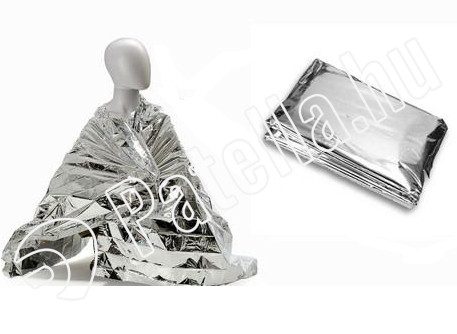 Polyester sürgősségi takaró, mindkét oldalon ezüst színű.