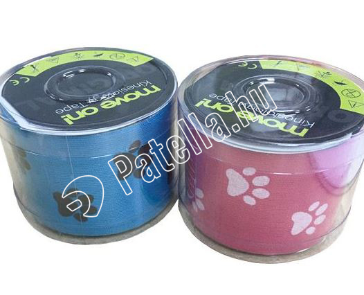 Nagyon jó ragadó erejű, ugyanakkor bőrbarát, move on! -tape alapon nyomott kineziológiai szalag tappancs mintával.