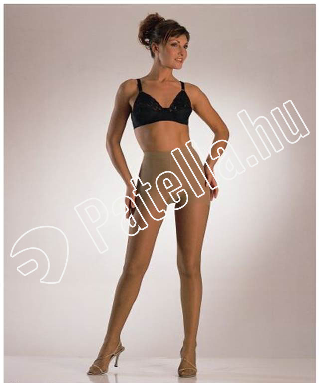 Selyemszálas, fényes, sima kötésű, 40 den-es fekete színű harisnya.