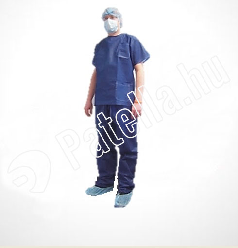 Tartalma: 1 db PP ing+nadrág, 1 db PP kék harmonikás hajháló, 1 db kék 3-rétegű gumis szájmaszk, 1 pár PE cipővédő